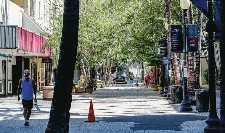 The Honolulu City Council is considering creating a Downtown Business Improvement District — renaming the existing Fort Street Mall Special Improvement District— to increase public safety and promote greater economic benefits. Pedestrian traffic Friday was sparse at Fort Street Mall.